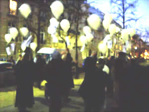 Malgré la vigilance des participants, quelques ballons sont restés accrochés dans les arbres, juste devant les fenêtres de l’Ambassadeur et ils rappelleront pendant plusieurs jours encore à Mme Tadelech Haïle-Mikael, qu’une petite fille innocente de douze ans est incarcérée injustement en Ethiopie dans une prison pour adultes, pour des raisons qui pourraient soit être d’orgueil (tribal ?) soit de volonté affirmée d’humiliation des réfugiés.