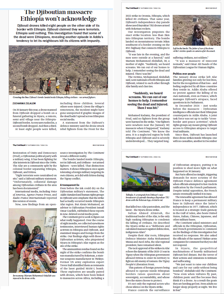 15/10/2025 (Brève 2523) Recherches et investigation (Zecharias Zelalem) Massacre délibéré à la frontière Djibouto-Ethiopenne (The CONTINENT N° 215)